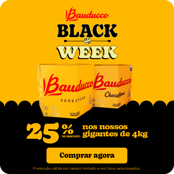 A Black Friday Bauducco 2025 trará uma seleção especial com os queridinhos da marca. São produtos perfeitos para presentear, compartilhar ou saborear em família. Como os descontos são por tempo limitado, a dica é garantir suas compras logo no início da campanha, assim você aproveita as melhores ofertas e evita o risco de produtos esgotados.